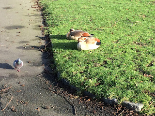 3) Still 3 goslings! It was dry on Wednesday so I managed to get Rory to the park. It was two weeks since we'd been but I was relieved to see the 3 Egyptian goslings are doing well and beginning to look less fluffy and more feathered.